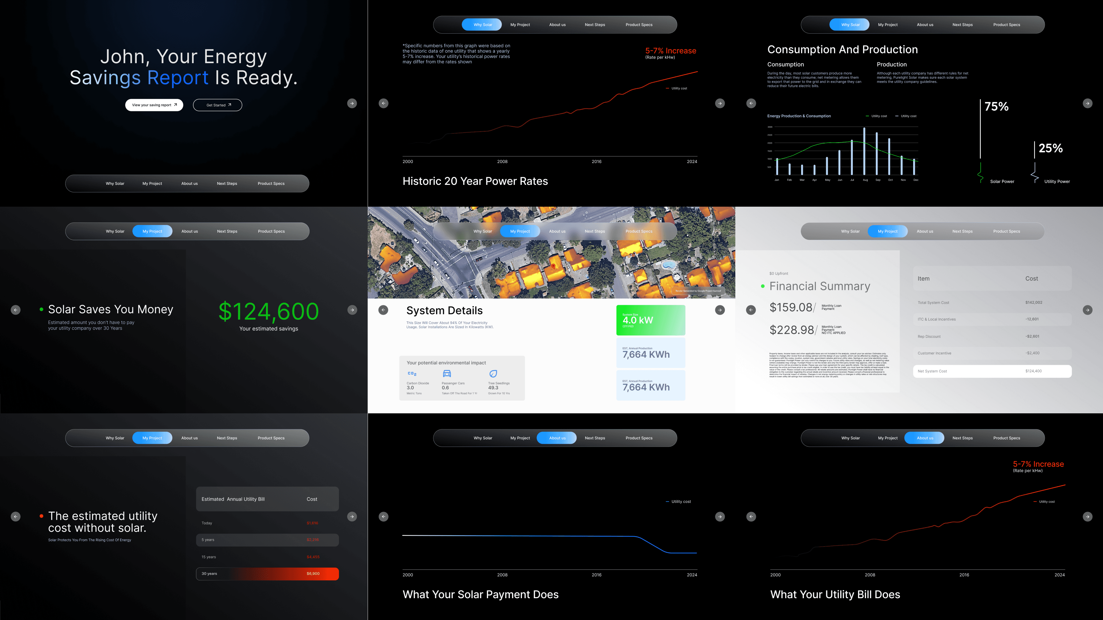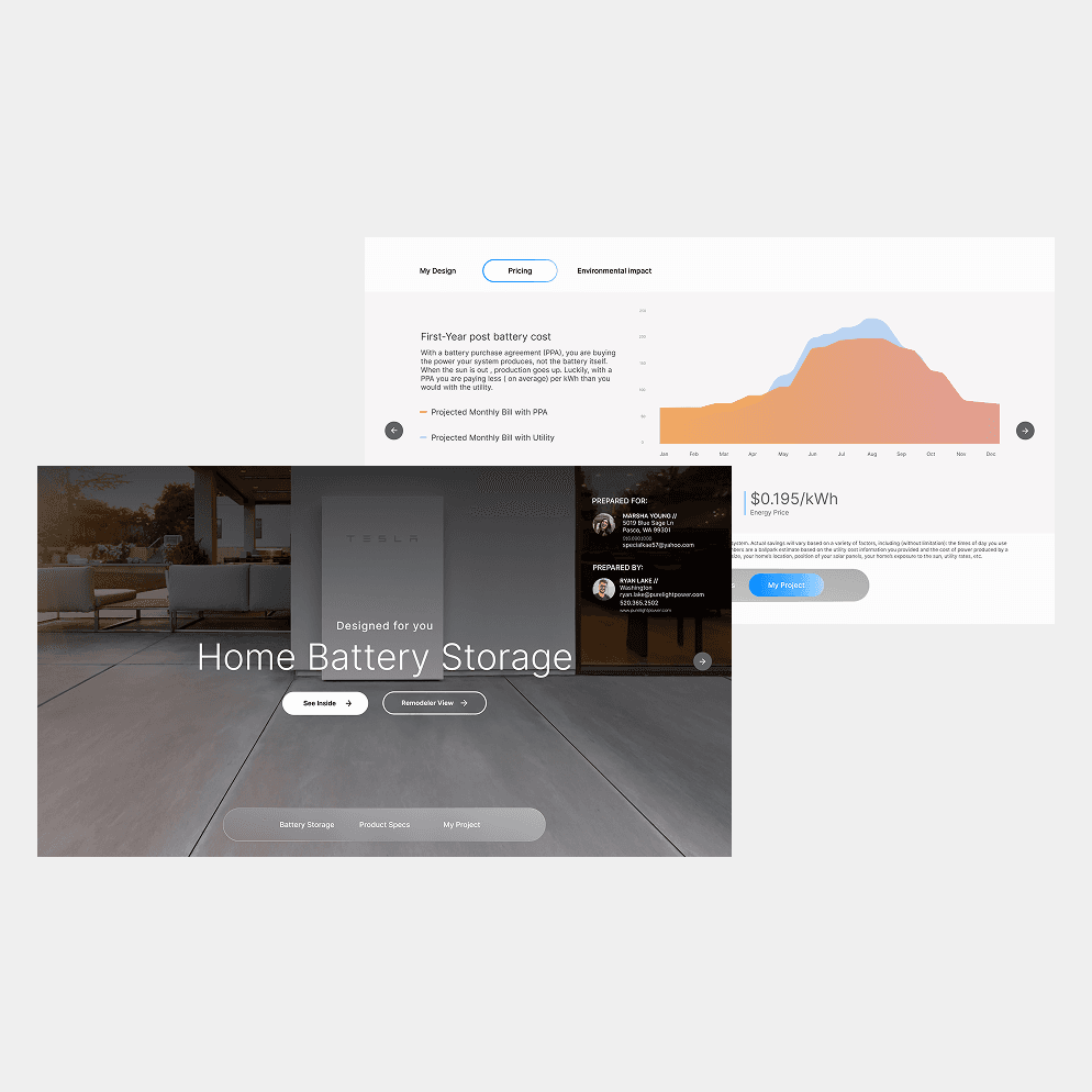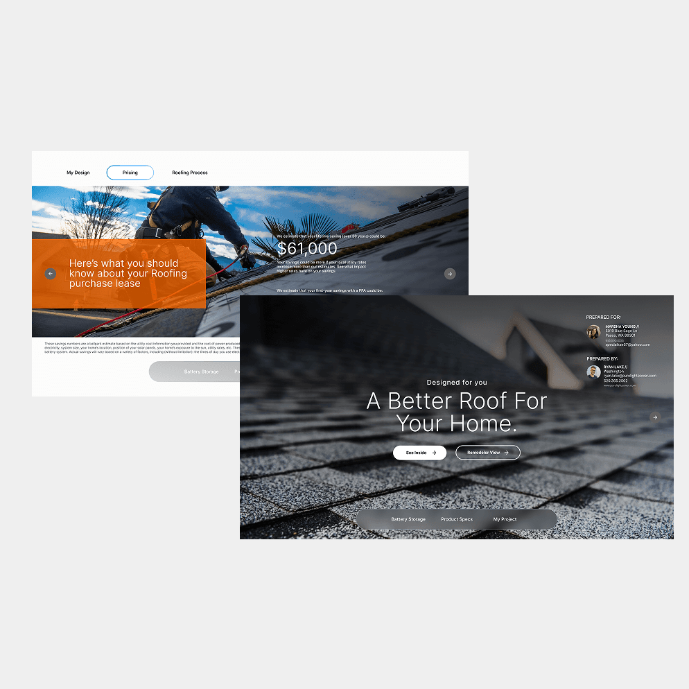 Working with our sales leadership, I led design from its initial concept through to launch and subsequent iterations. My aim was to create a dynamic new proposal, enhancing customer engagement and boosting solar conversion rates.