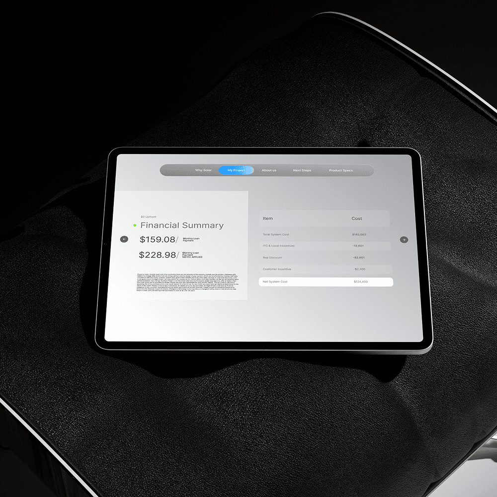 Step: Design for indecision. I designed it to enable a "one call close". However, solar is a considered purchase and a long-term investment. Therefore, I also designed Dynamo to be a proposal that can be left behind which the customer who can pick it back up later and accept the proposal.